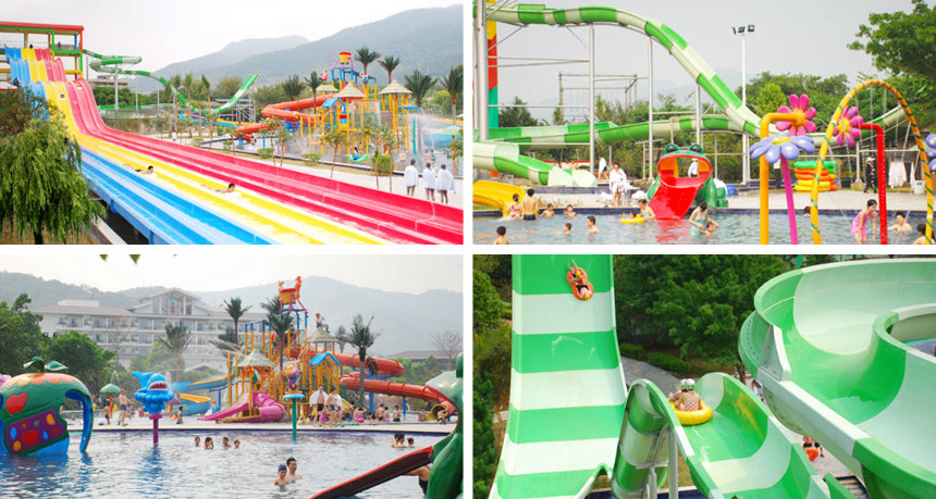 广东省惠州市龙门南昆山温泉大观园生态度假区欢乐水世界引进了“冲关回旋”、“六彩滑道”、“动感水屋”、“迷城水寨”、“T型喷水”等多种大型水上游乐项目,高速俯冲,弯道探险,精彩绝伦。大观园欢乐水世界占地近万平米,拥有冲天回旋滑道和波浪速降高速滑道,其中冲天回旋滑道有水上过山车之称,非常适合喜欢挑战和刺激的年轻人;总长度180多米的六彩滑道,通过助推水流实现分级高速俯冲,让你充分感受到激情水中冲刺,感受超越普通滑道的刺激;大观园欢乐水世界还拥有总面积超过4000平方米的动感水屋、蘑菇喷淋、T型喷水等专门为儿童设计的游乐设施,设置了多种新奇滑道和动感戏水池等,使您可以充分体验五彩缤纷水世界的无限魅力。这里是对勇敢者的心理挑战,是水的世界,是挥洒激情的乐园,让我们忘记烦恼,忘记年龄,尽情体验水的魅力带给我们的刺激感受和欢乐氛围。