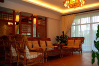 别墅6间双人房、有室内温泉浴池、别墅院子里还有室外的温泉池。