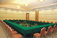 决策厅总面积110㎡,会议室摆置剧院式可容纳110人,课桌式可容纳70人,回形式可容纳60人,U型式可容纳40人,整体环境宁静幽雅,并配有先进的会议设施和保障系统,可满足各种会议需求,是各界商家及单位团体举办会议和宴会的理想场所。