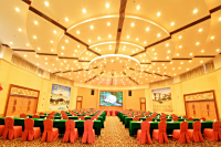 来宾厅总面积217㎡,会议室摆置剧院式可容纳200人,课桌式可容纳100人,回形式可容纳80人,U型式可容纳70人,整体环境宁静幽雅,并配有先进的会议设施和保障系统,可满足各种会议需求,是各界商家及单位团体举办会议和宴会的理想场所。
